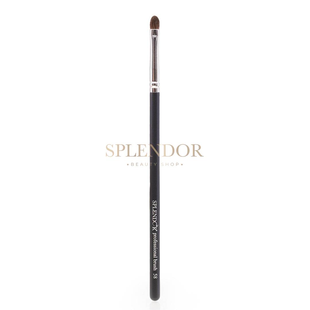 Pensula Profesionala Splendor S58 plata detalii / precizie / aplicare farduri par poneiCatifelata la atingere, pensula profesionala pentru machiaj Splendor S58 este mica, alungita, usoara si permite aplicarea foarte precisa a fardurilor si pigmentilor pe pleoape. O pensula cu varful usor rotunjit.