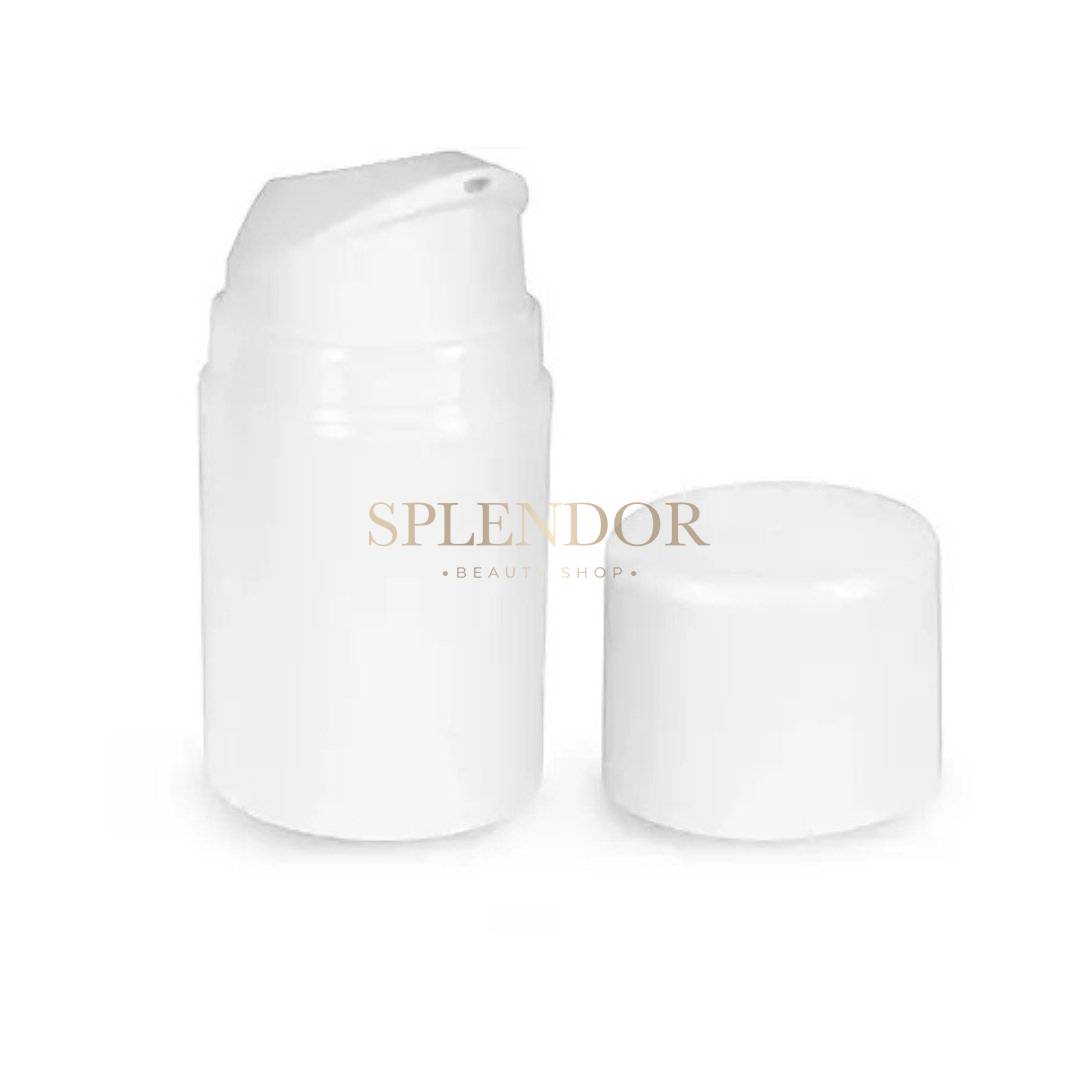 Recipient airless plastic alb 30 mlDatorita sistemului airless, acest recipient previne contactul compozitiilor cu aerul, protejand formulele cosmetice de oxidare si contaminare microbiana. Parfumul si prospetimea sunt pastrate mai mult timp, iar sistemul de pompare prin vacuum asigura utilizarea pana la ultima picatura. Este potrivit pentru: