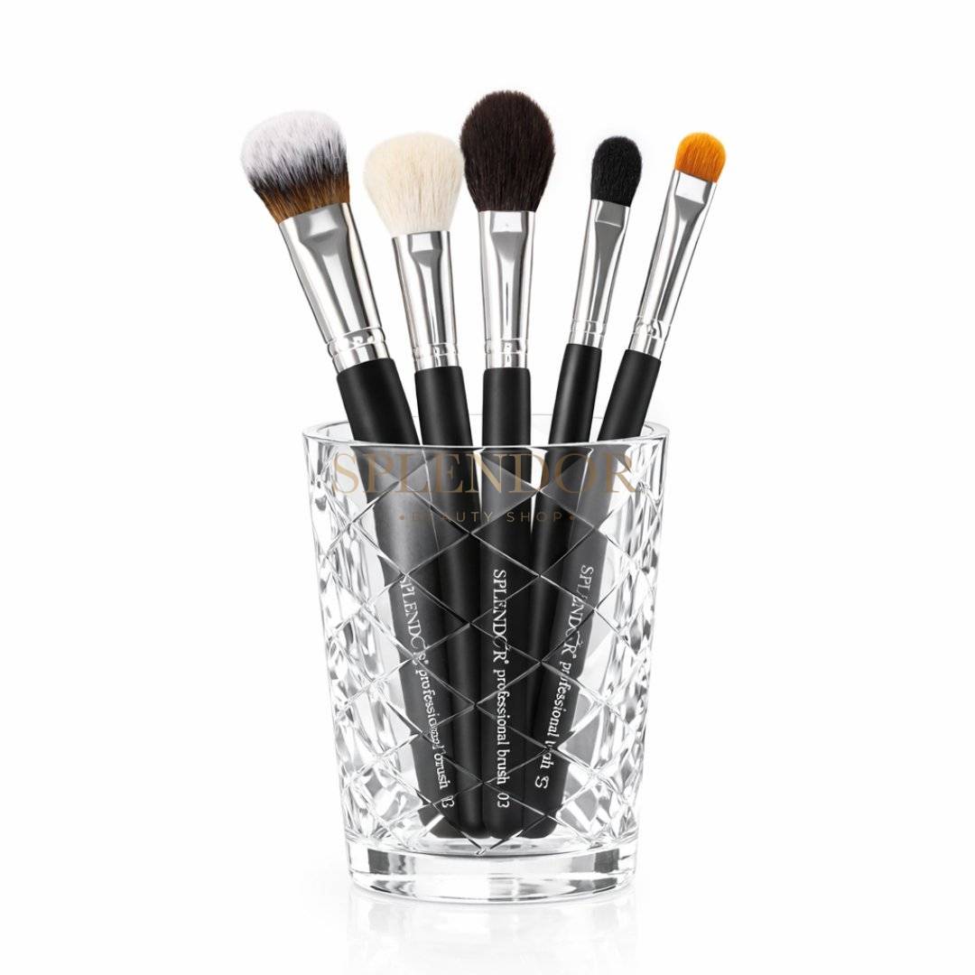 Suport pentru pensule machiaj – argintiu, design modernCompleteaza-ti zona de machiaj cu un suport pentru pensule argintiu, cu design modern si functional, creat pentru organizare eficienta si un aspect curat, profesional. Finisajul argintiu ofera un plus de stil si luminozitate, integrandu-se usor in orice spatiu de beauty. Realizat din plastic rezistent, suportul este usor, stabil si practic, fiind ideal pentru pastrarea pensulelor de machiaj ordonate si la indemana. Designul sau permite depozitarea pensulelor de diferite dimensiuni, contribuind la mentinerea formei si durabilitatii acestora. Potrivit atat pentru uz personal, cat si pentru saloane de beauty sau makeup artisti. Caracteristici: